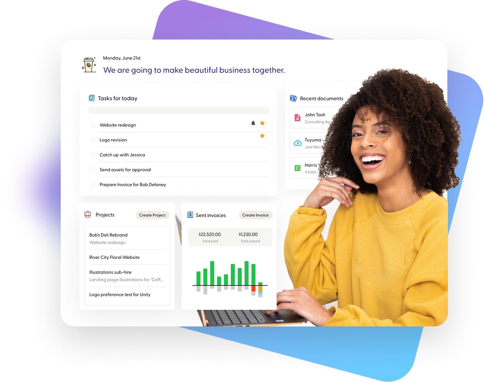 For all the freelancers looking for an easy invoicing solution, Indy is the best option. With its suite of tools, Indy helps you organize the contract, add all the unbilled hours to the invoice, keep a track of the time and send that invoice to the client. You can set up recurring invoices, work using different hourly rates and even add your company's brand name to the bill. Indy's tools permit you to use a variety of payment modes like PayPal, Stripe, Zelle, and many others. Indy proves to be an optimum value for the freelancers and contractors who set up their own businesses.
