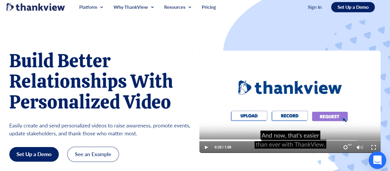 ThankView is a user-friendly and customizable video making platform that helps users to streamline the entire engaging process with audiences, efficiently manage events and enrollments, raise funds and knowledge, and convert new donors into life-time contributors. Send personalized messages and recorded videos without any delay. It is an ideal platform for teams to save time. ThankView allows users to create groups by recipients' names, class year and other standards to record a video for cohort. Along with this, merge those data points into written characteristics of the platform. Recipients can send their responses to your ThankViews with their own videos. It is the best method to get feedback and reviews. You can add buttons or attach provided forms to encourage your views to take action. Bring students, scholars and employees to make specific videos which will come back to your library for analysis.